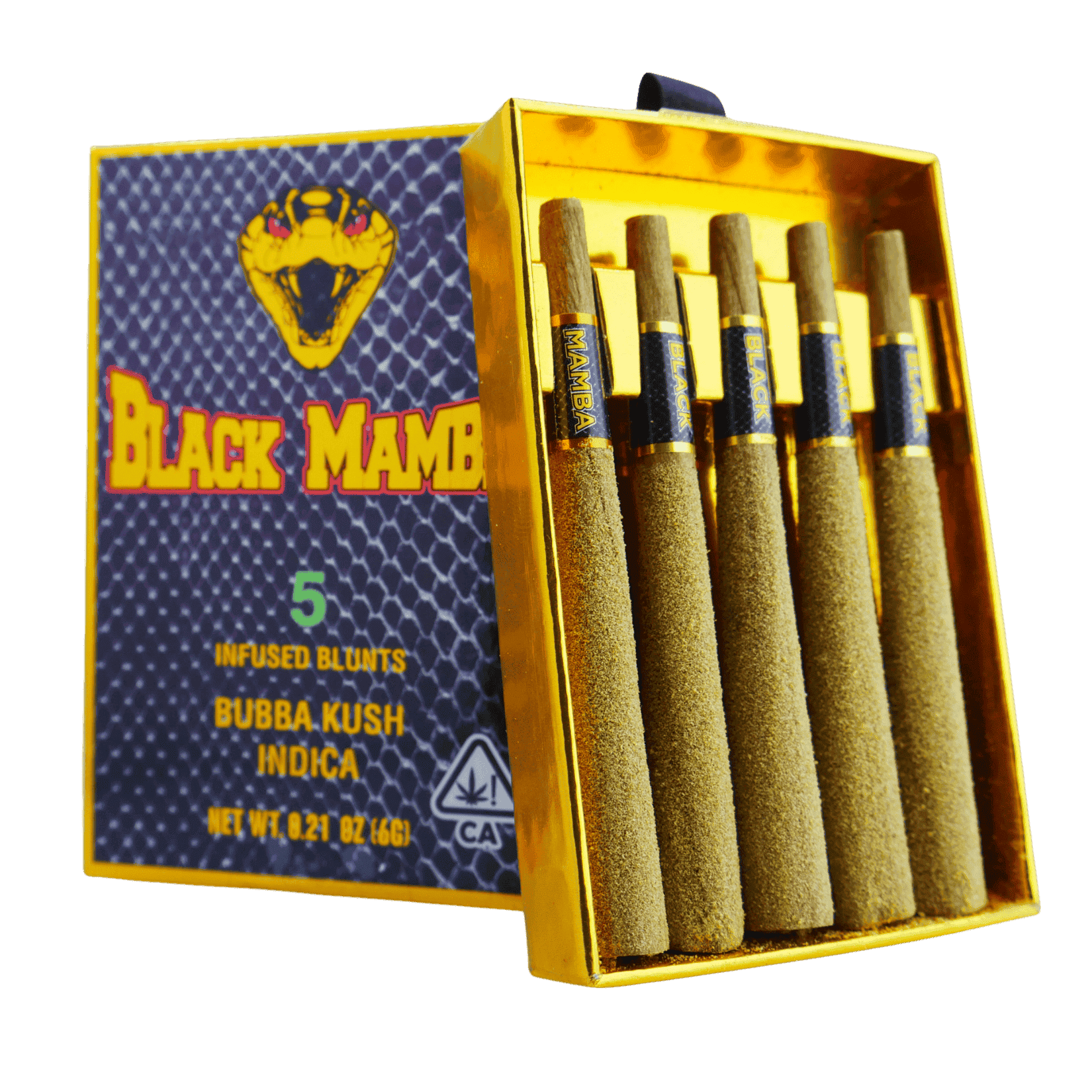 INFUSED CANNABIS IN PRE-ROLLED BLUNTS Premium Indoor Flower W/THC Distillate, THC Sauce House Extracted Hash and Kief Net Wt. 6 grams (0.21 oz.)
